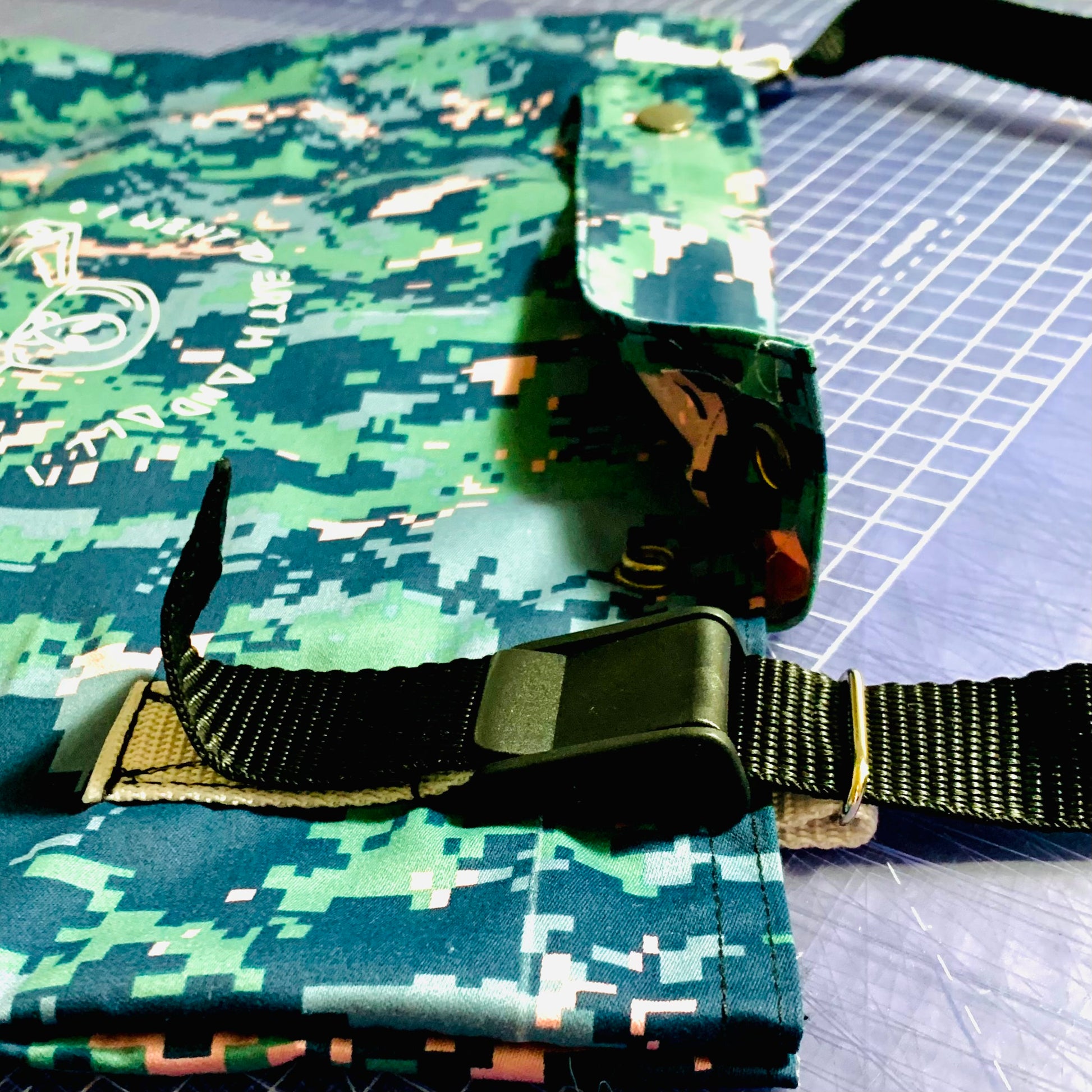 Totes (By be) sit ~A3 sized, with ~10cm depth at the base. The internal pocket is ~A5 sized. The bag closes with two popstuds & the strap can be adjusted using the delrin cam-flap buckle.
