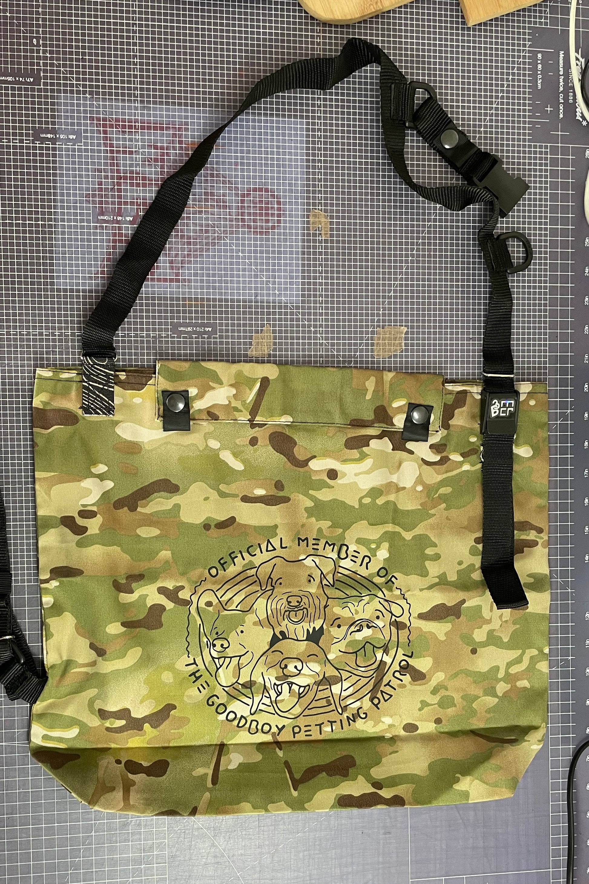 “Tote: A simple, cost-effective, shoulder-bag. Designed to be made from one piece of fabric, with a large space for artwork. Artwork may include (but is not limited to): Illustrations by the designer themself; artwork by collaborating, independent artists; branding and/or large bodies of text, which simply explain the item upon which it is printed.”