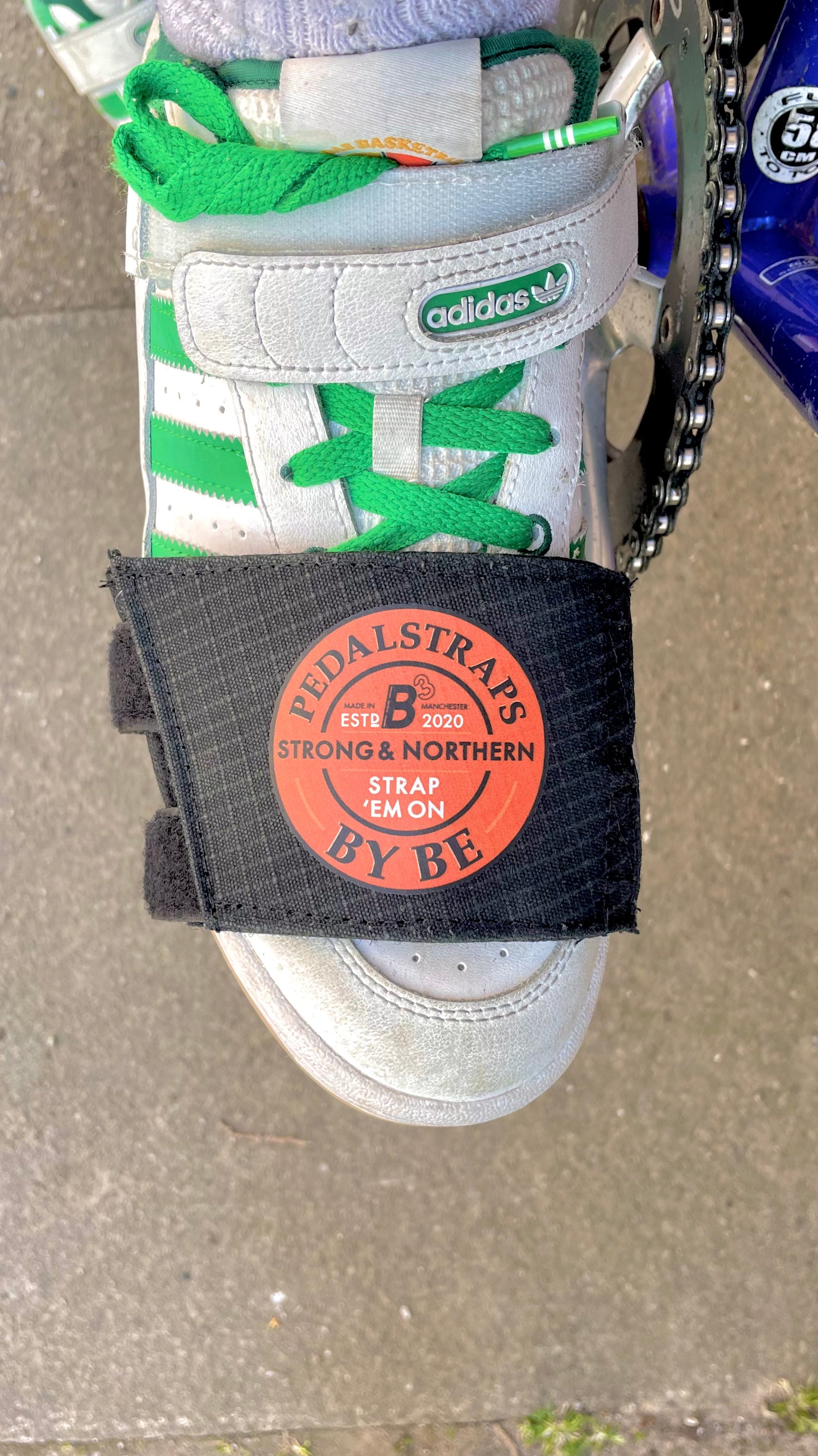 Pedalstraps for keeping yr feet strapped to yr pedals of yr bike! NOW with Velcro adjustment!